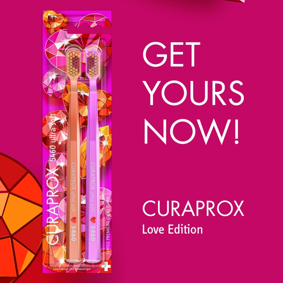 Bộ 2 bàn chải Curaprox CS 5460 Love Edition 2026 mang thiết kế rực rỡ lấy cảm hứng từ đá quý của nghệ sĩ Kia Schwaninger, giúp biến việc chăm sóc răng miệng mỗi ngày thành một trải nghiệm nghệ thuật đầy cảm hứng. Đây sẽ là món quà Valentine hoàn hảo để nâng niu nụ cười và bảo vệ sức khỏe của người bạn thương yêu.